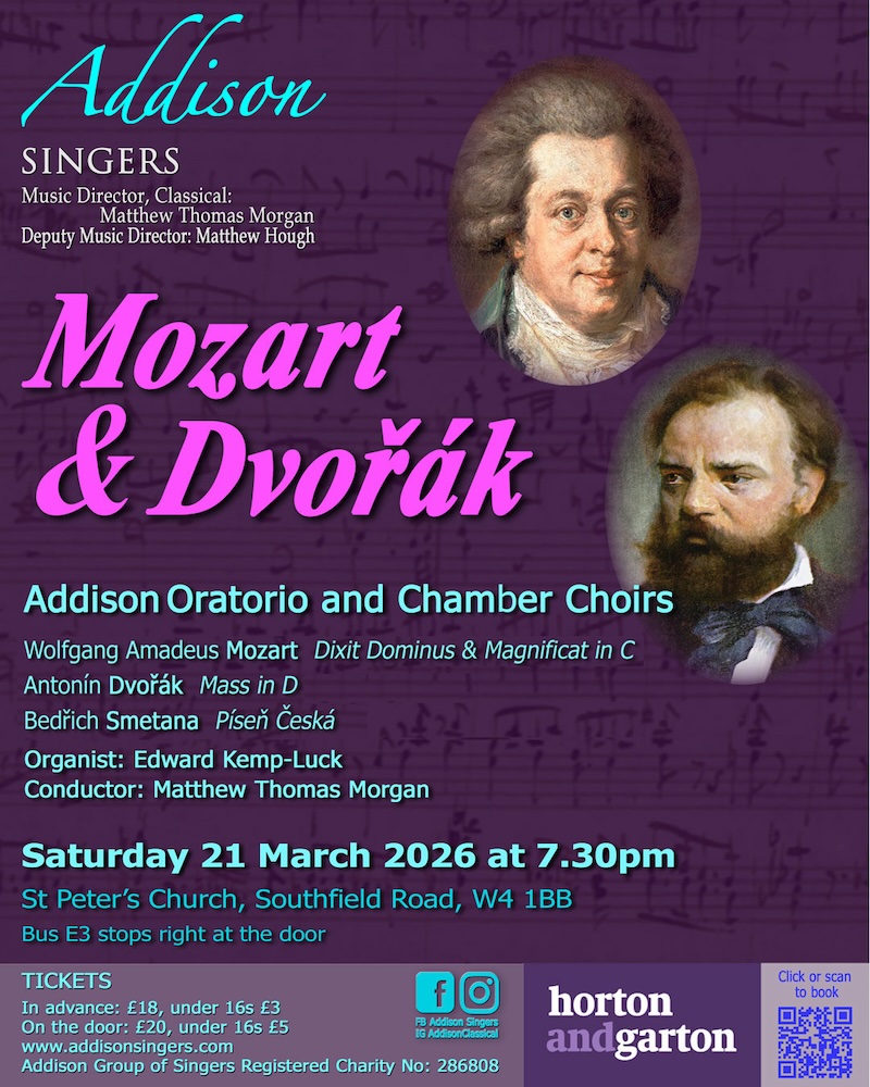 The Addison Singers Spring Concert 2026 will take place on 21st March 2026 with a programme of works celebrating the best of modern British composition and composers native to, or associated with, Prague, where the Classical Choirs will tour to in May 2026.